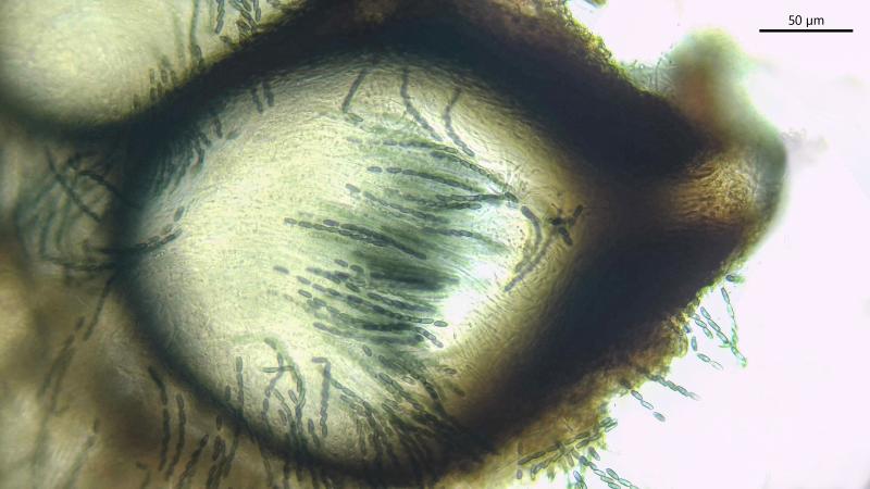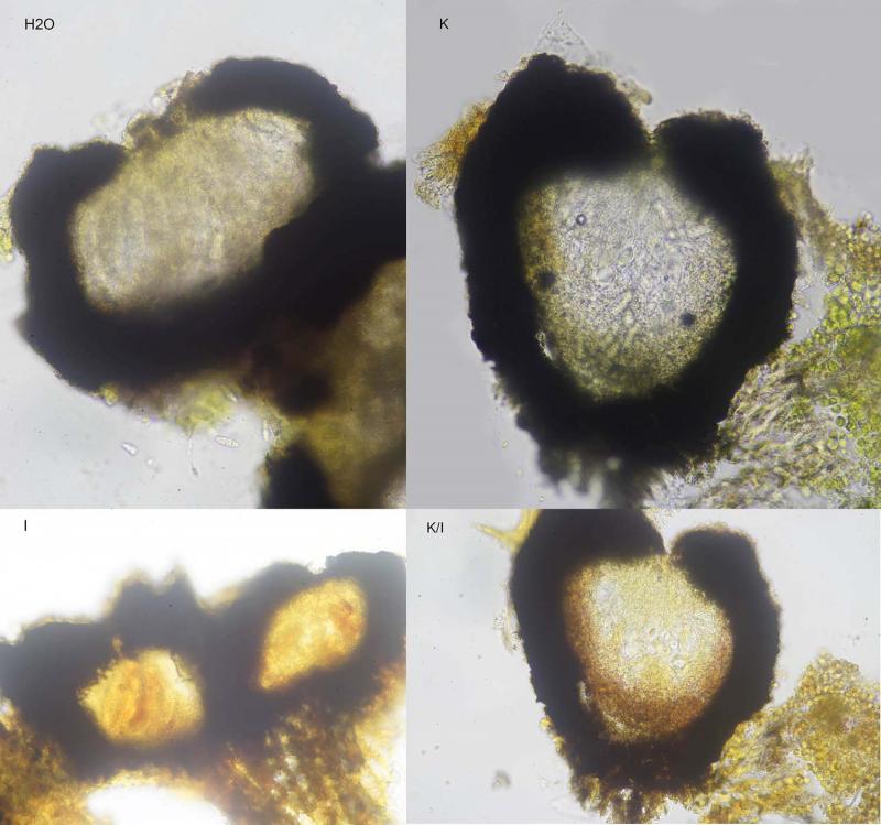 these are wonderful docus! I agree with both, my memory and comparison with the images leave no other option. O. palmicola is especially interesting as we had only one collection. I am quite sure that you would see a relatively thin apical thickening with ocular chamber in dead asci. The SBs are a little longer and narrower, I measured from your scale 1.5-2.5 x 0.8-1.1 µm.