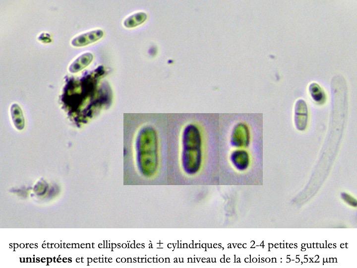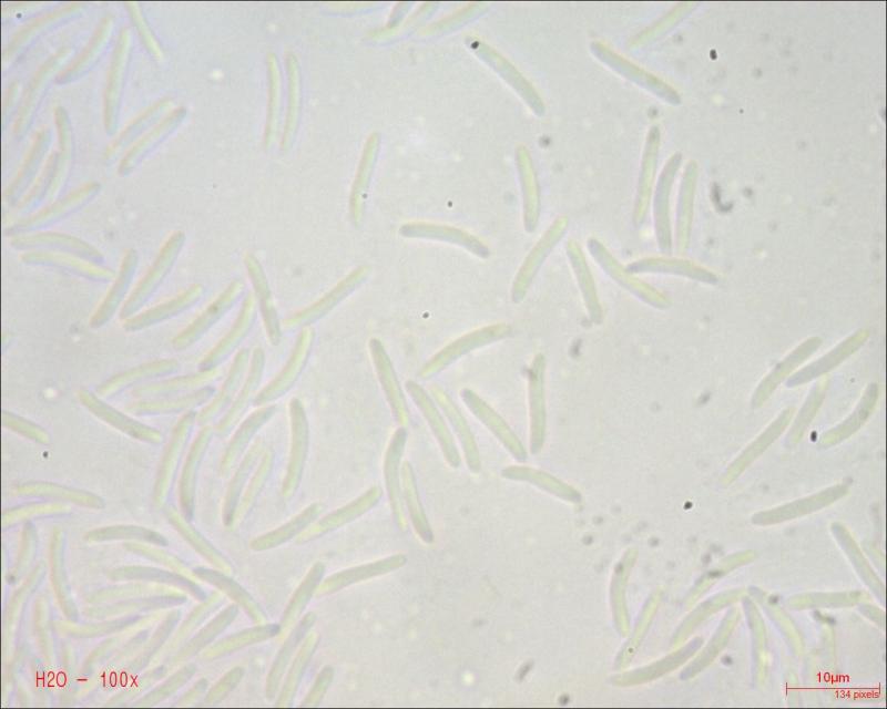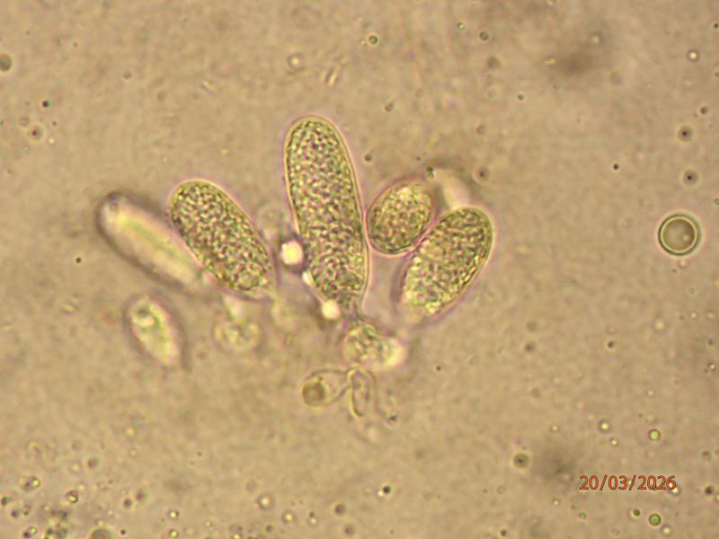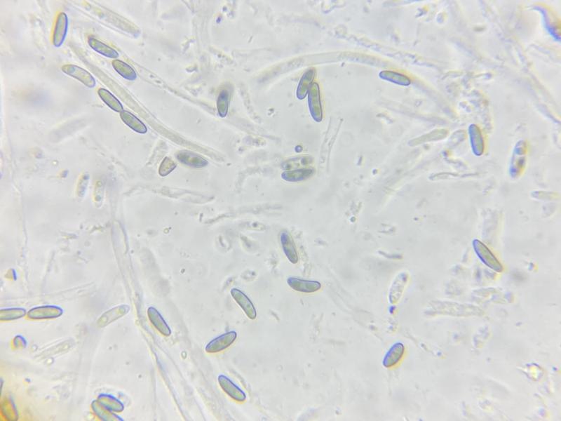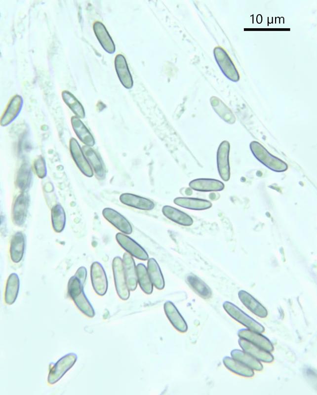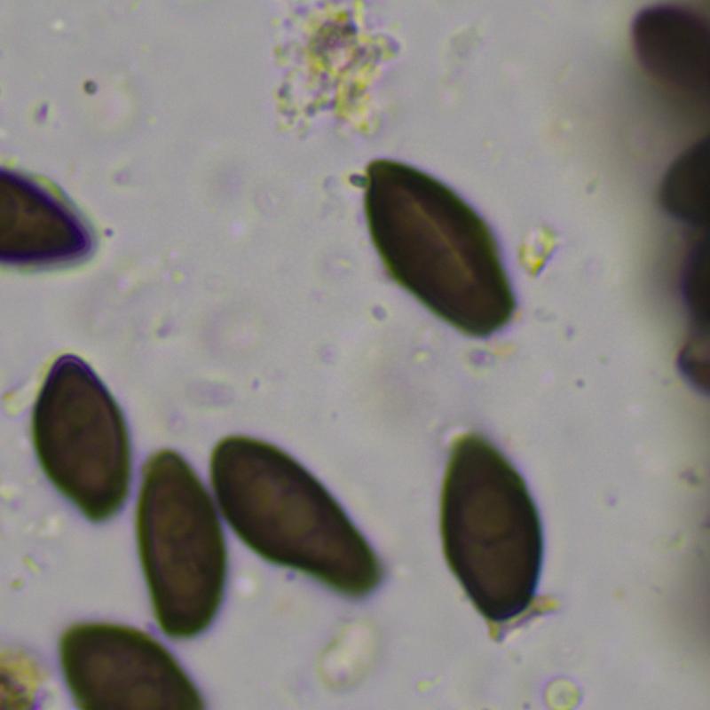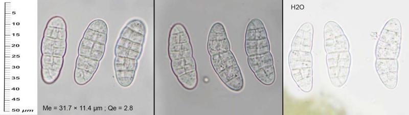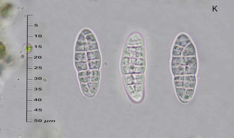 Spores brownish, typically 4-celled; 26.8 x 2.4;