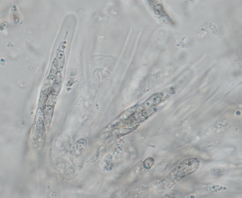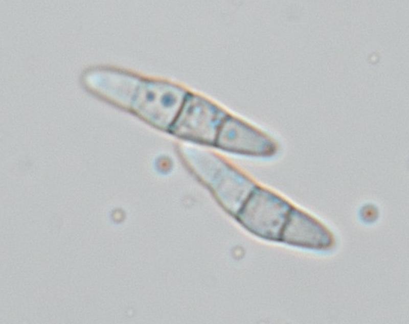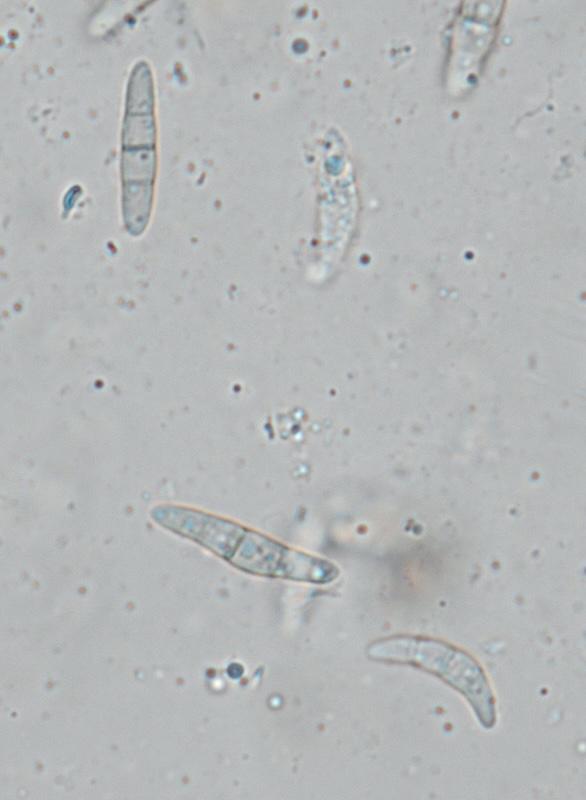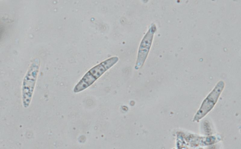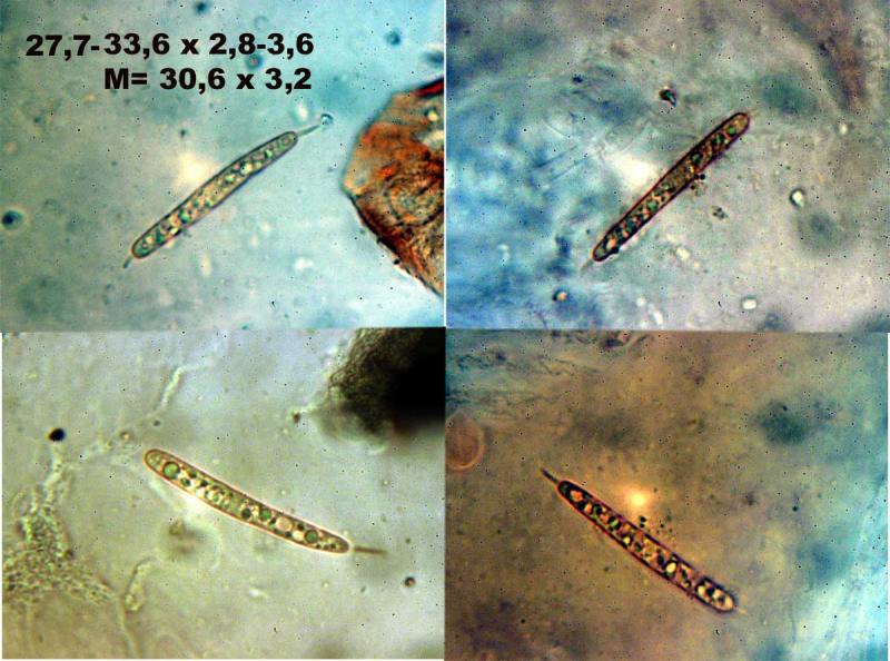 j'avais initialement pensé à Ascobolus crenulatus ou Ascobolus costantinii, mais les spores de ma récolte sont plus grandes: 16-18 (19) x 8-9, le plus fréquent 18 x 9.