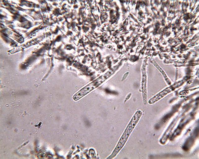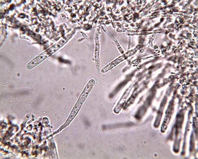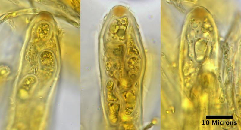 note faint, hyaline appendages apparent only in DIC