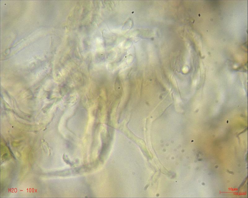 And the marginal hairs, which are longer and narrower and always pigmented, just like the walls of the excipular cells.
