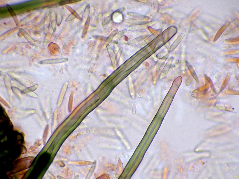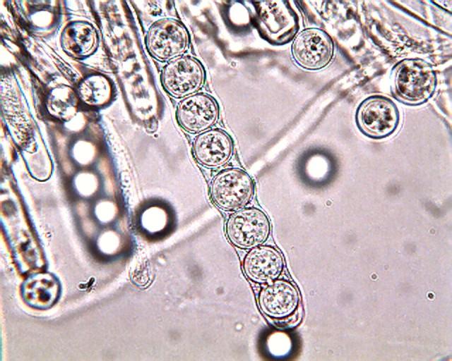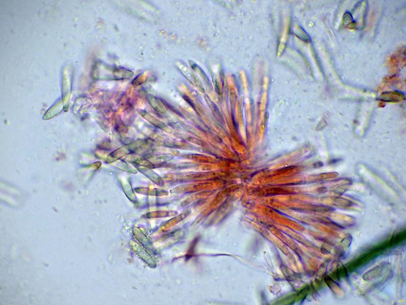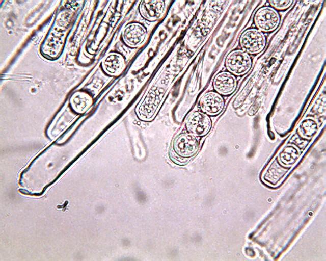Asci are hemiamyloid, red in IKI and blue in IKI after pretreatment with KOH. With croziers. Measuring: