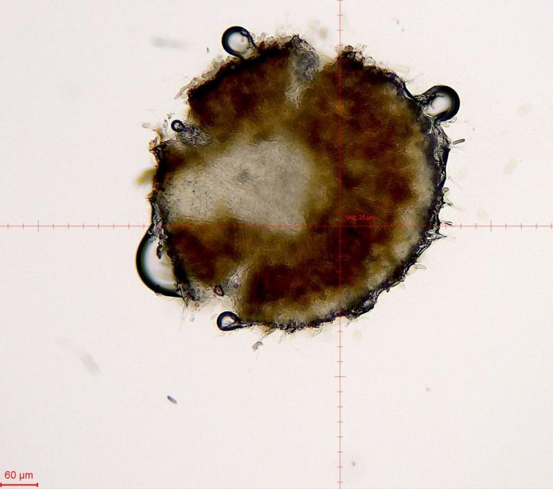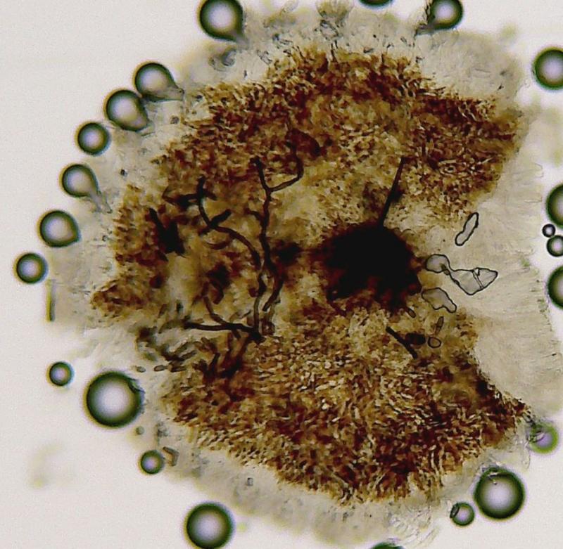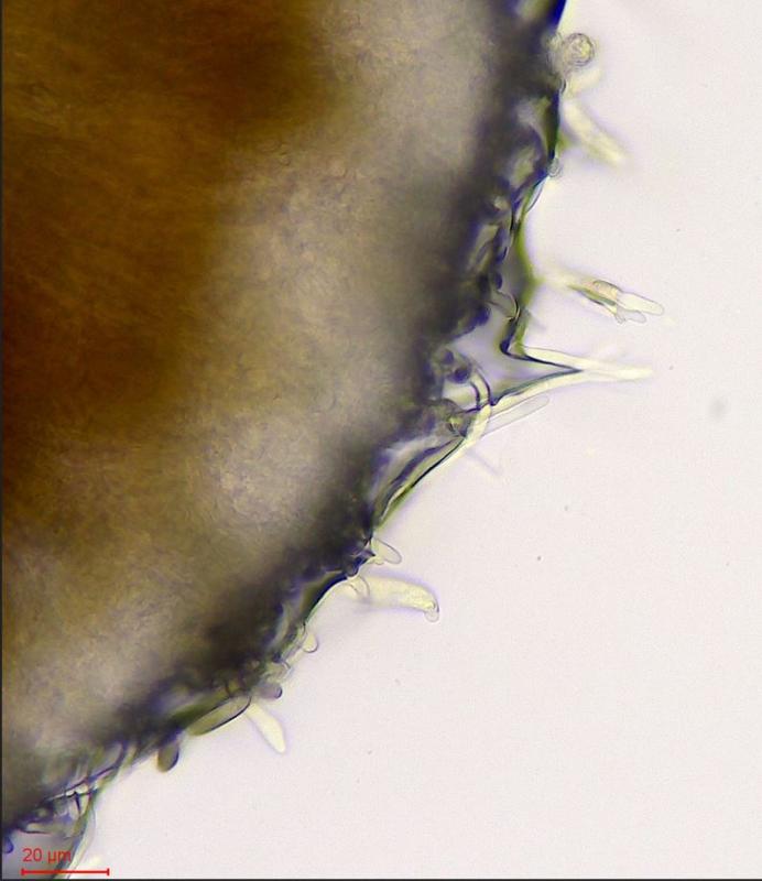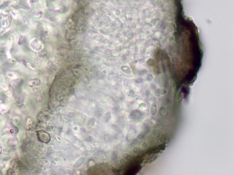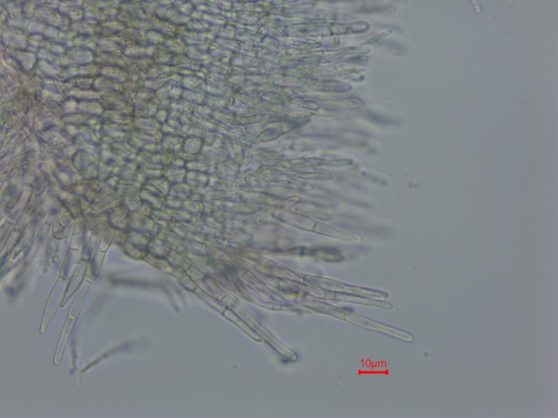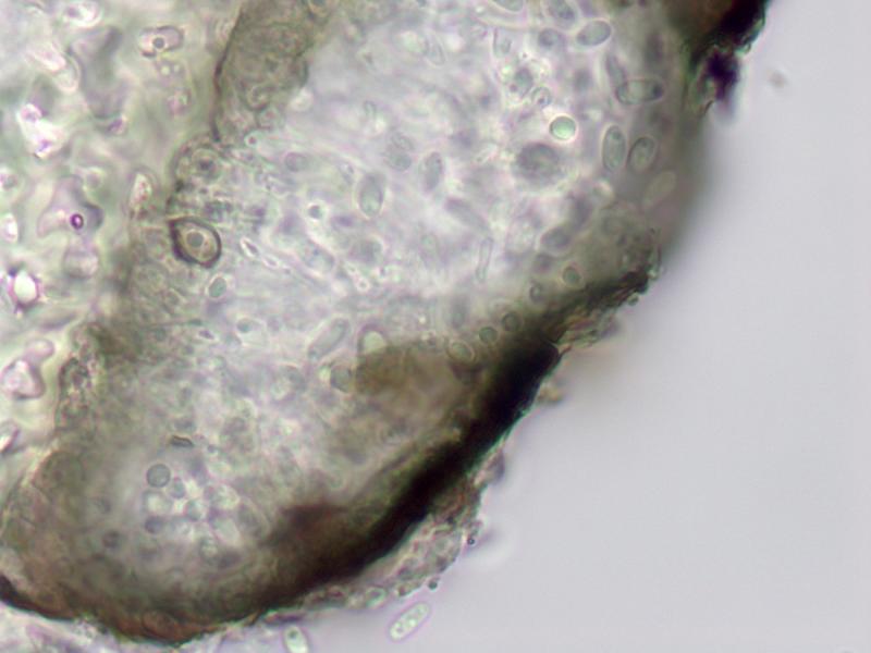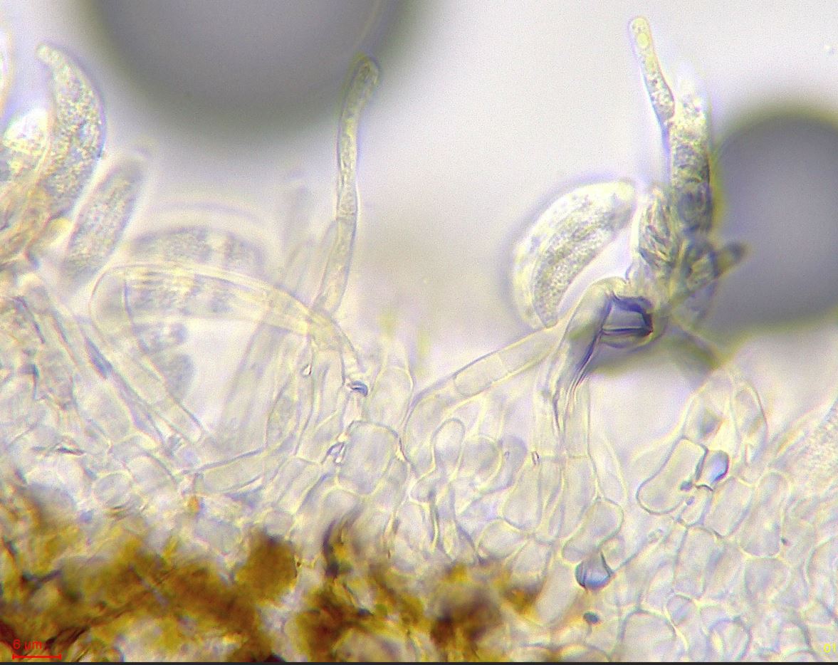 Le bois était imbu, mais il n'y avait que quelques exemplaires. Les apothécies étaient inférieures aà 1 mm, Leptodontidium trabinellum semble convenir, la réaction au Lugol semble être rb dans le cas de mon étude, c'est le seul point qui me semble discutable.
