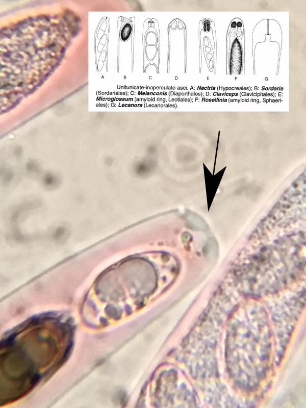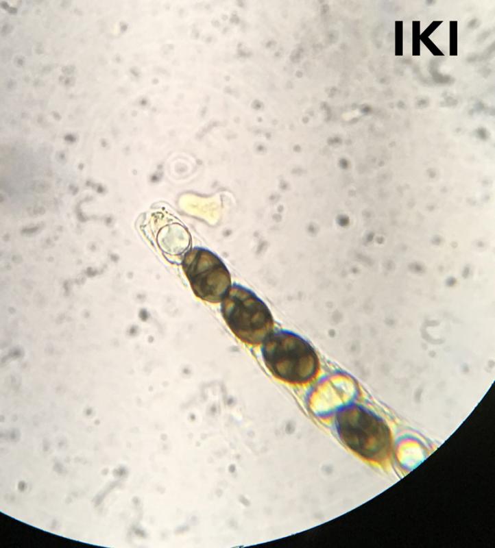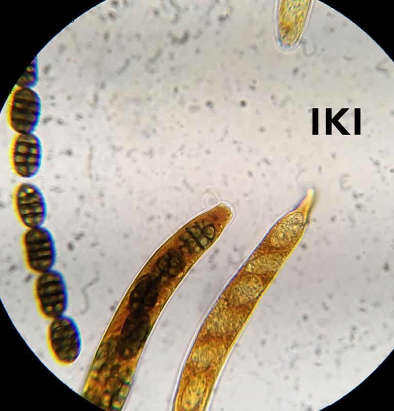 Les asques, IKI+, font 275-361 x 13.8-18.6 µm