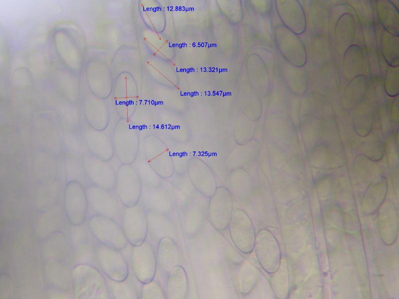 Sporen: 5,8 - 7 x 2,8 mu