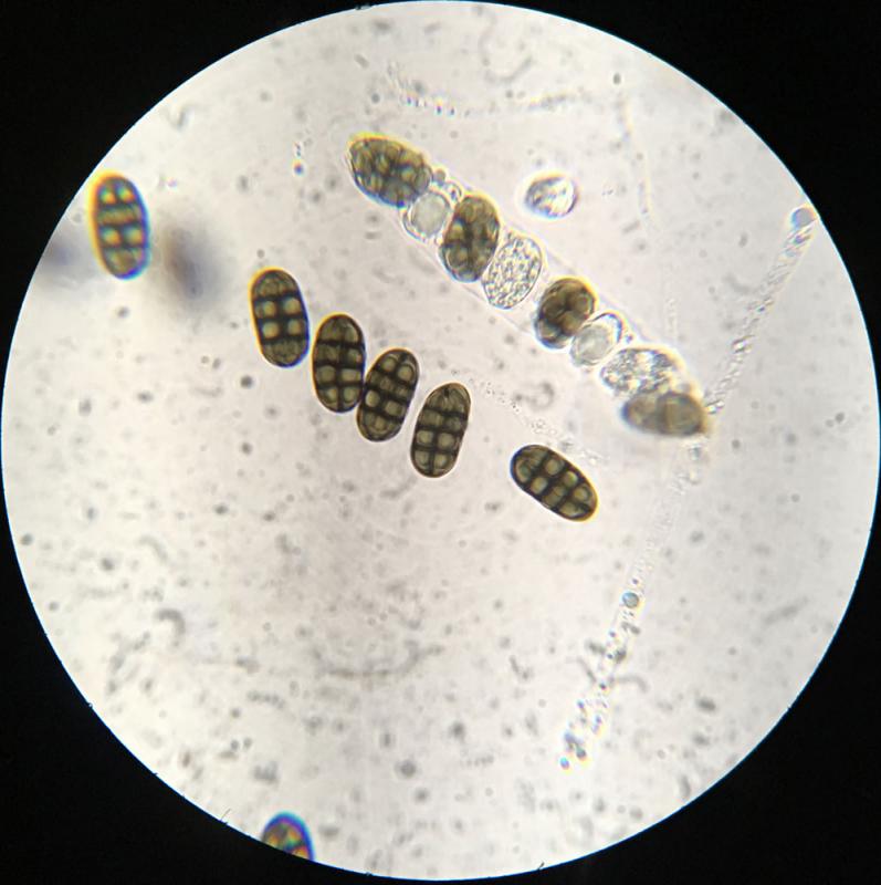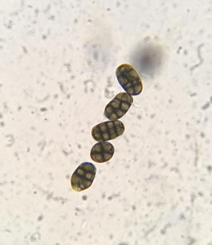 Les spores sont lissent avec un guttule à peine visible et ont une paroi épaisse