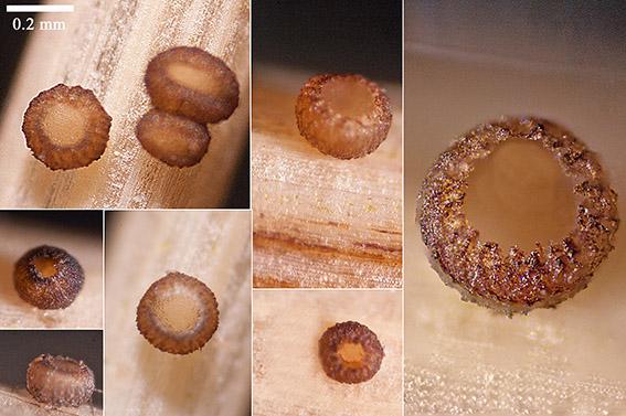 Je m'interroge sur cette option après la lecture du document suivant donnant des précisions sur les deux genres. Ma trouvaille montre un stroma érompant évident sur la photo agrandie, pas de rugosité particulière ni de forme discoïde évidente ou de papille particulièrement noirâtre.