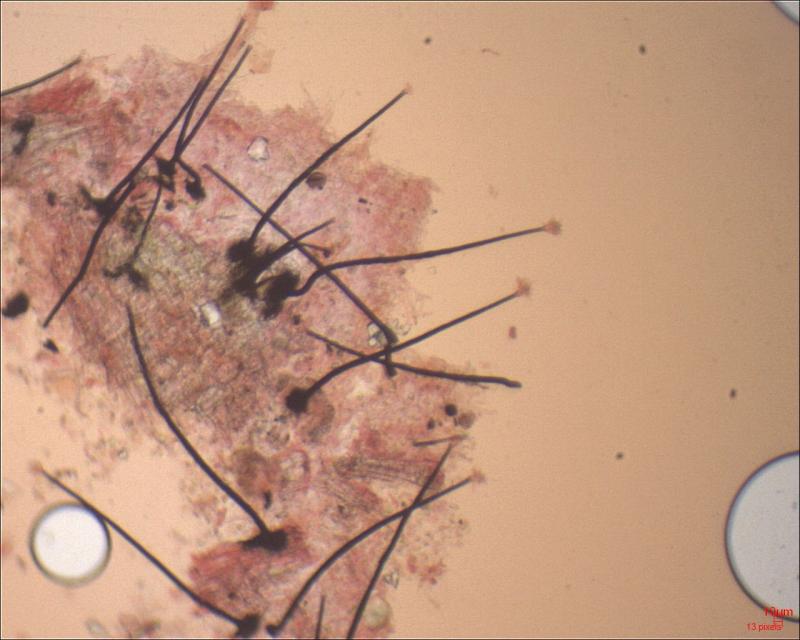 The other photograph depicts conidia, or ascospores from te ascomycete.The perithecia were to scanty and, mostly, to small ot prepare from the paper.The anamorph is catched wirh cellotape.