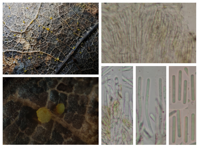 Hello.A suspected Hymenoscyphus sprouting on a thi