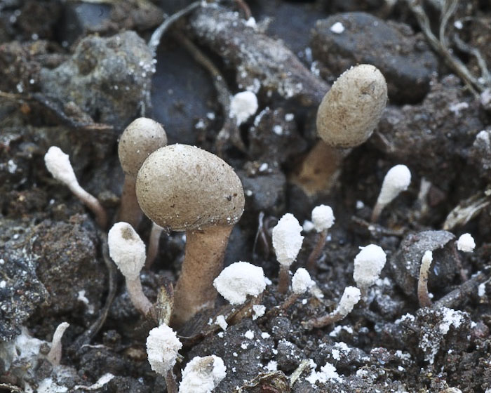 Buenas nochesTengo esta extraña Xylariaceae de color claro de macaronesia (La Gomera), con dos colecciones: la primera con largos rizomorfos unidos a semillas de Beta vulgaris (espinaca vulgar) a nivel del mar, y la segunda sobre restos de Phoenix canariensis (palmera canaria). De 2-3 cm de altura.