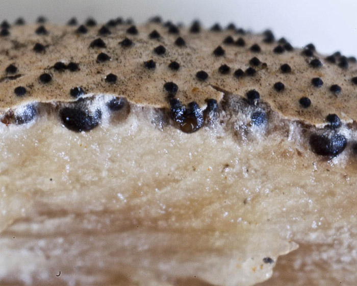 Perhaps these photos clarify about the stromatal layer covering the perithecia, at least in this species I think it is clear.