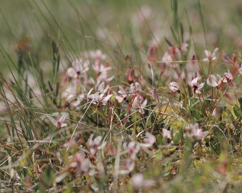 First and most easy searchable is Monilinia oxycocci, apothecia are arising from hidden inside of berries sclerotia just in early summer.