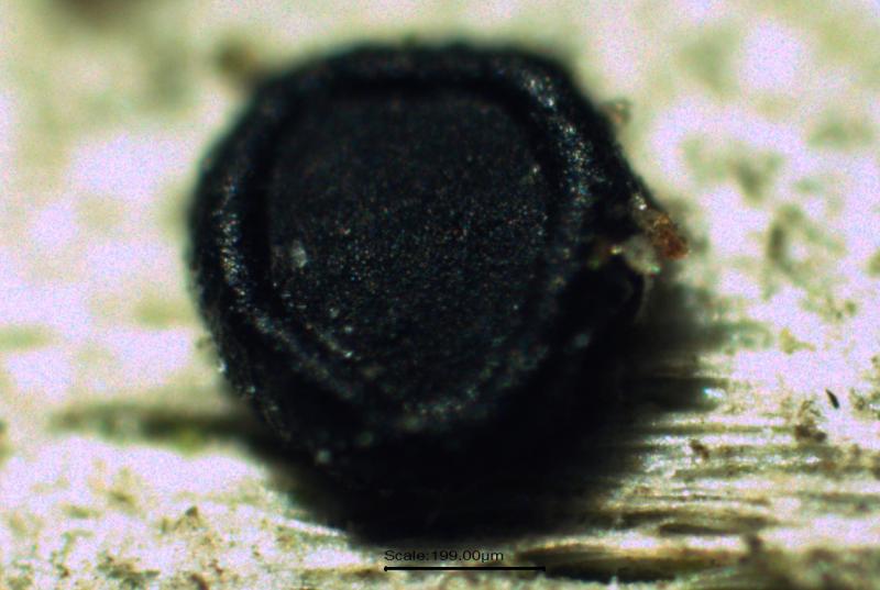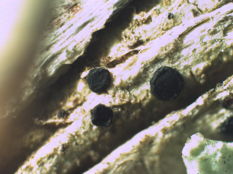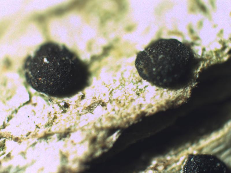 Hello.A tiny ascomycete, appearing as erupting gra