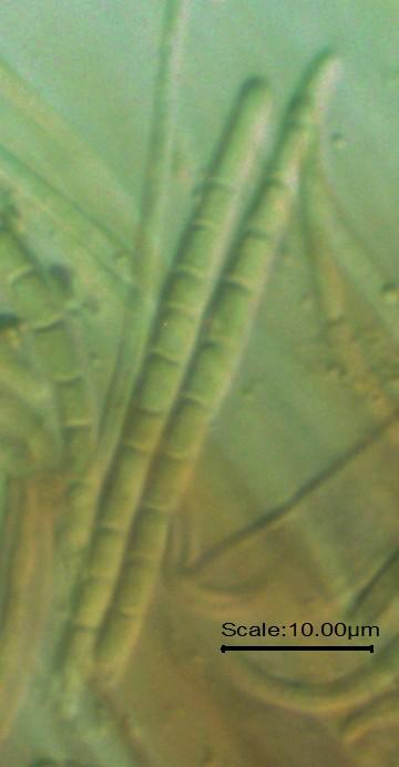 o.k., I find 45-61 x 3 µm. The blue I see now, but it is not present already without KOH? Because in Patellaria occurs a blue pigment in water or KOH.