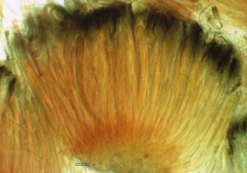 I need some help with this apothecium found in died branches of Juniperus sp.The first look I thought That i was looking to on Patellaria, but when I saw the micro my opinion has changed.