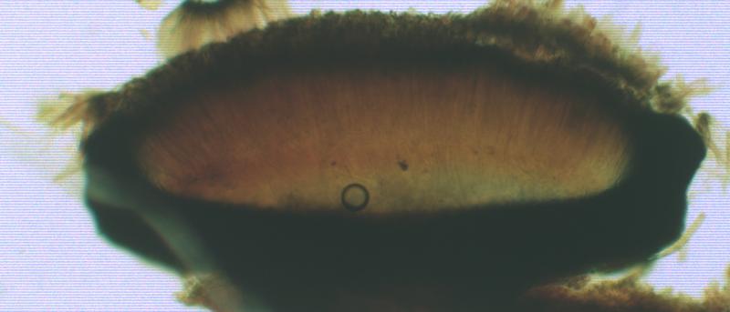 What you see is in small apothecia a part of the host tissue after having broken it