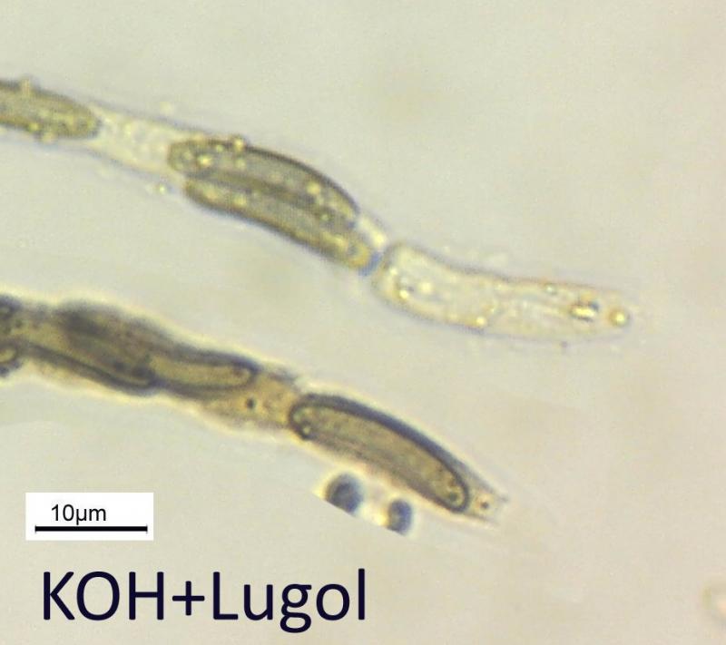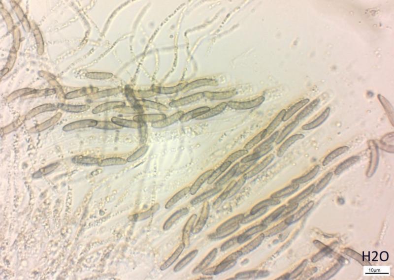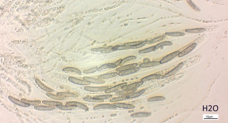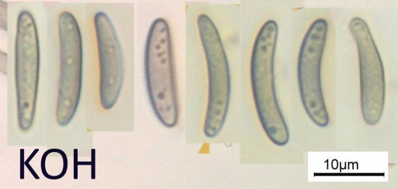 Spores: (11.5) 13.9 - 17.5 (19.1) × (2.4) 2.7 - 3.3 (4.1) µm; Q = (3.8) 4.3 - 6.1 (7.1) ; N = 30; Me = 15.6 × 3 µm ; Qe = 5.2
