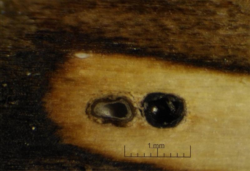 Stroma immersed in blackened wood,