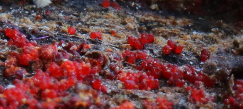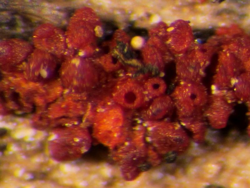 I am reposting the finding of a Cosmospora species with new and more correct information.This was growing on the wood pf chopped trunks of an unknown tree, just below the outer skin of the bark (hence not fully exposed). According to experts in this forum, the perithecia are embedded on the substratum of another Deuteromycetes fungus carpeting the log. I managed to grow pure colonies of the anamorph which I can't really tell if they are Fusarium or Fusarium-like Acremonium, but they are white cottony colonies.