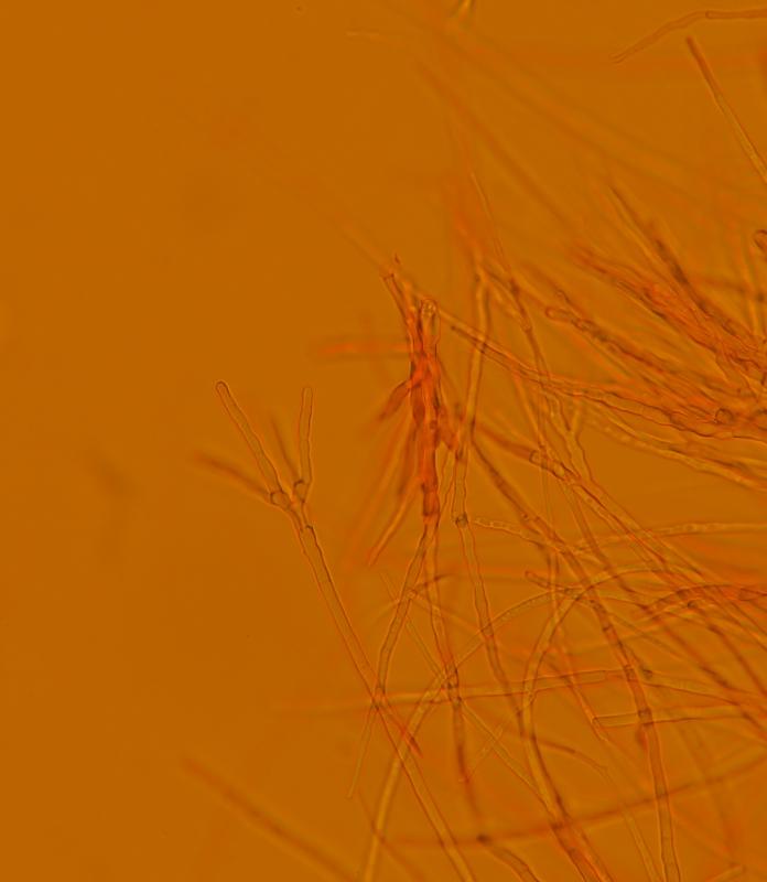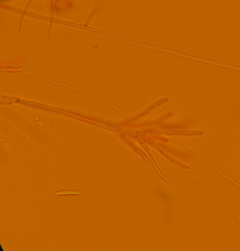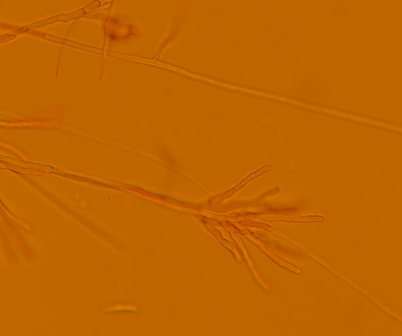 fungi C. pseudoflavoviridis: No hyphal hairs, not on fungi : NO