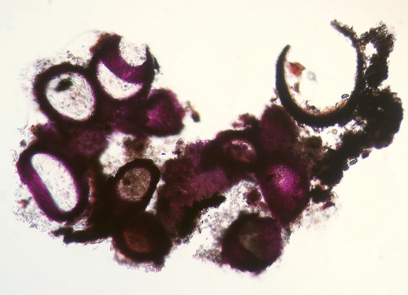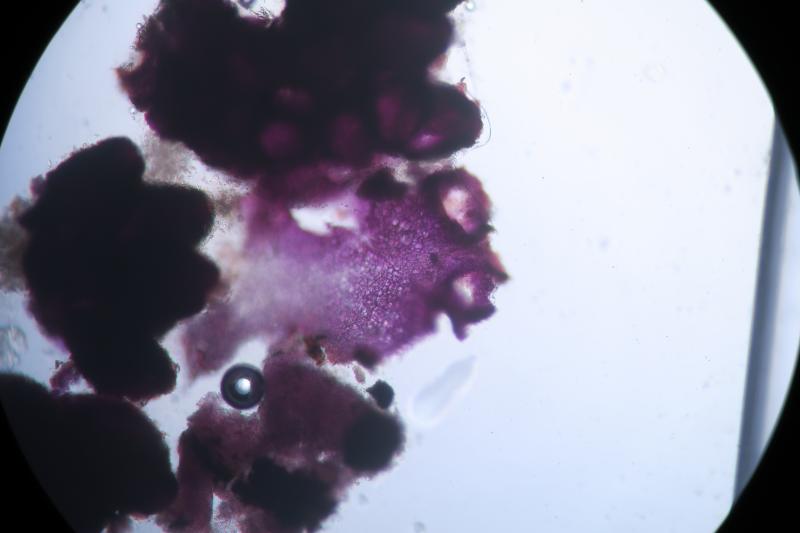 Paraphyses not numerous, filamentous, very thin and hyaline, inconspicuous and do not take the stain very well.