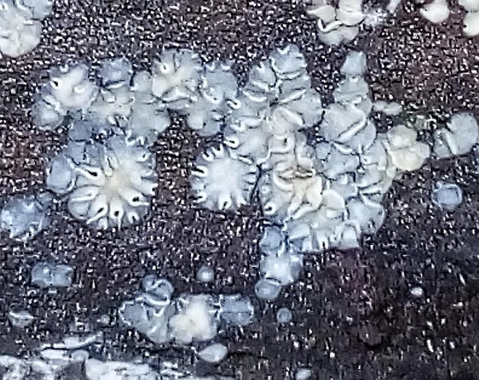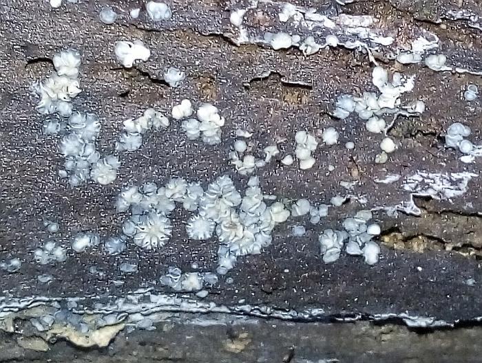 The greyish blue fruit body has a diameter of 2 mm or less. The cups do not have their stick, sitting on the bottom. No strong coloring is applied to the potassium-hydroxid. (the discoloration is yellow)
