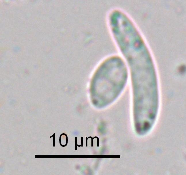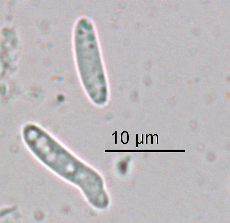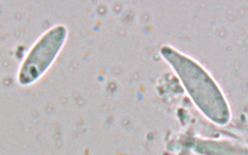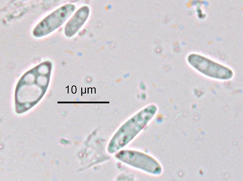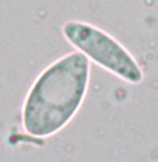 Spore (6,6) 10,7 (15) x (2,3) 3,1 (5,3) tiny oil drops are have, there are spores whose shape and size differ significantly from the average