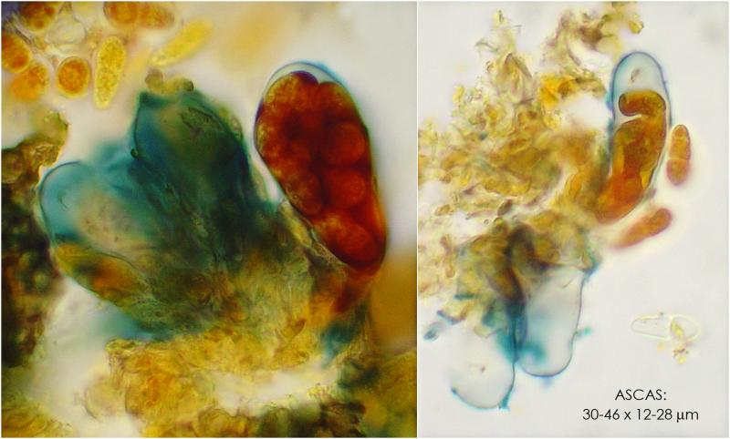 Las paredes de las ascas reaccionan de forma amiloide al IKI.