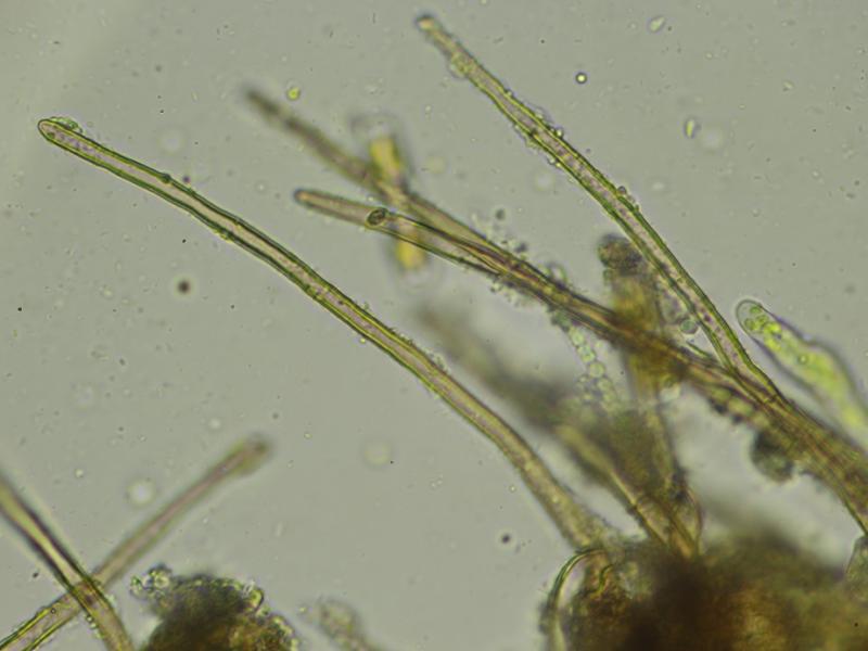 Pelos con el ápice agudo o ligueramente acuminado en el ápice, septadas, con la base ensanchada y de hasta 320µm de largo.