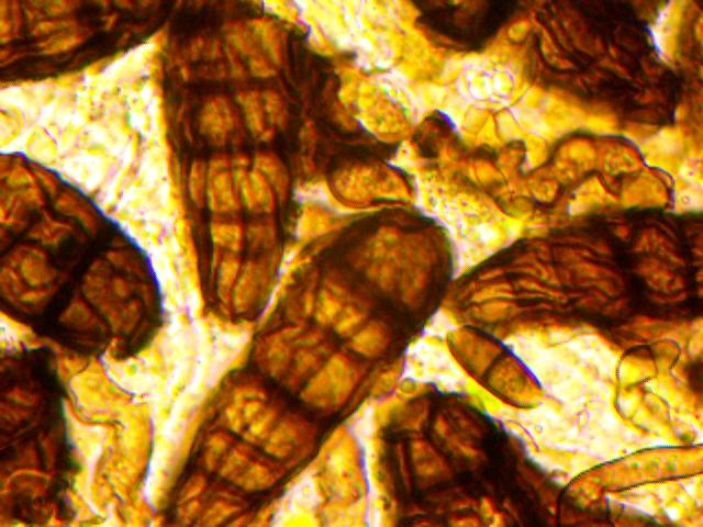 Conidia cylindrical or subclavate, 36-5x15-17 µm, (4)5-distoseptate, covered with more or less longitudinal to irregular arranged ridges, dark brown.