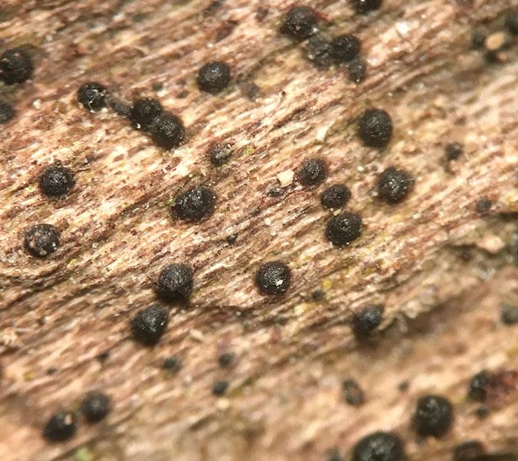 I found this recently in Brooklyn, NYC. These black, partially immersed fruiting bodies are tiny: .2-.5 mm in diameter. They are globose to pyriform and have an apical ostiole. They were growing on well rotted, decorticated hardwood. Asci are IKI- and 62-89 by 7.5-12.5µm. Spores are hyaline, single septate (13) 15-17 (18) by 4.5-6µm. Any ideas? Thanks in advance.