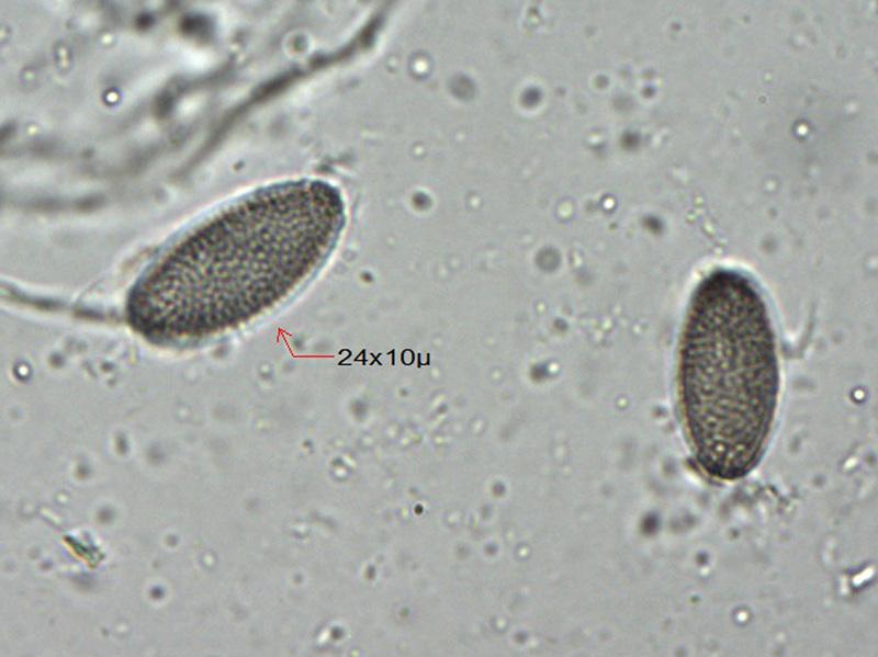 On dung of deer I found a small Ascobolus barrel-shaped, with a light yellow colour ,asci of about 95x16µ and warted ellipsoid spores of about 24x10.5µ. A part of the excipulum had a brown colour.