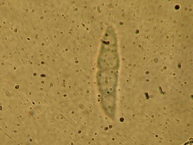 Spores with 3 segments, 30 - 35 x 8 - 10 my.