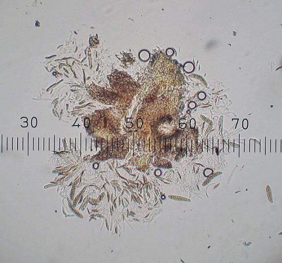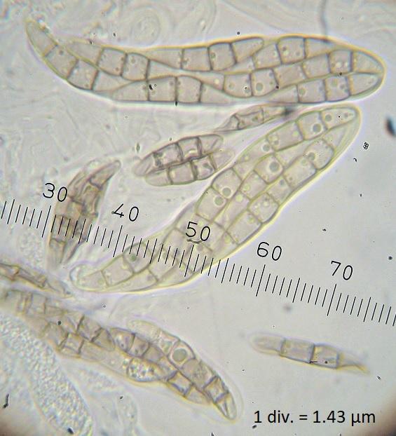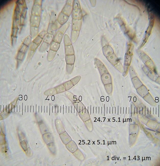 Spore sizes: 24.7-25.2-26.5-26.6-27.2 x 5.1-5.1-5.4-5.4-5.4 µm, Q = 4.9