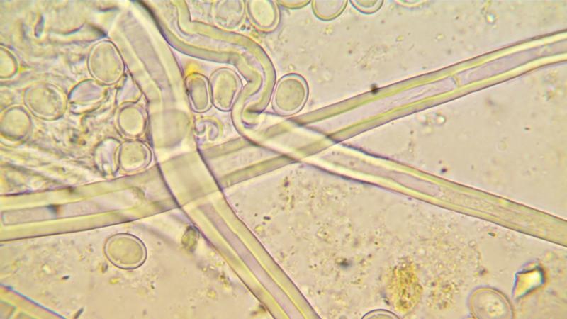 Poils hyalins, lisses, à paroi épaisse, de 250-300 x 6-8 µm.
