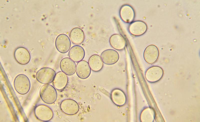 Conidies (?) très abondantes, hyalines, largement elliptiques à subglobuleuses, lisses, 9-10 x 6-8 µm.