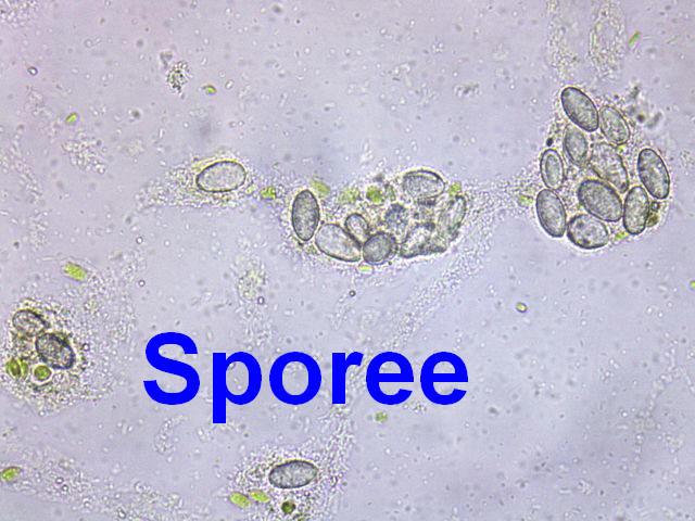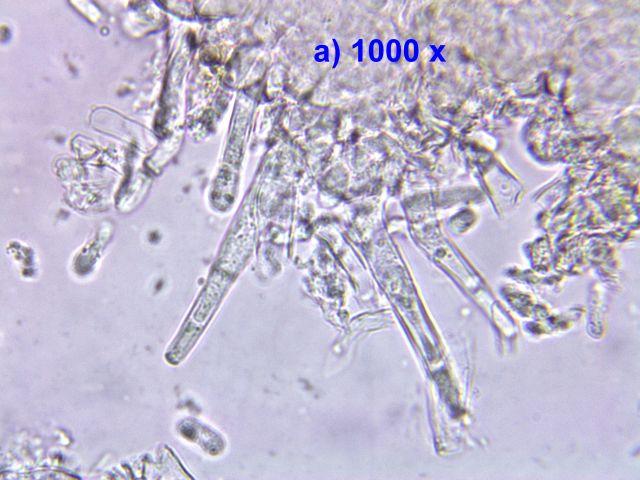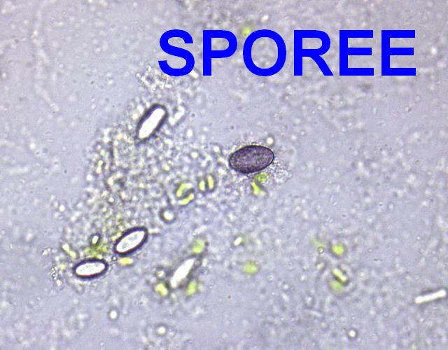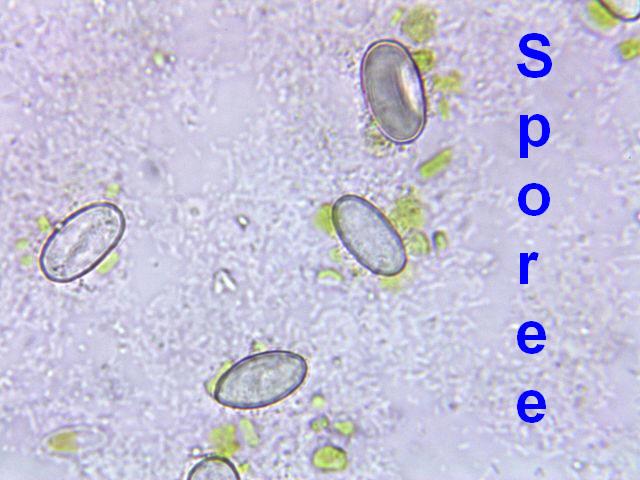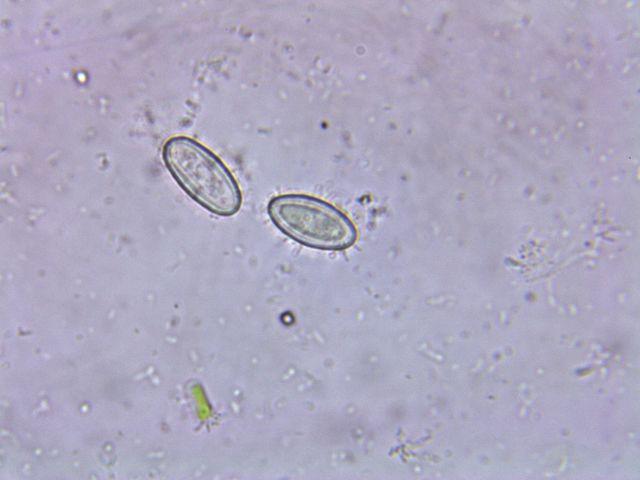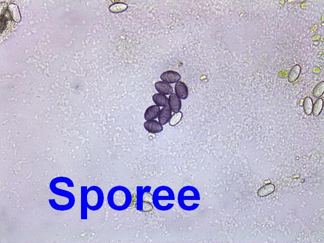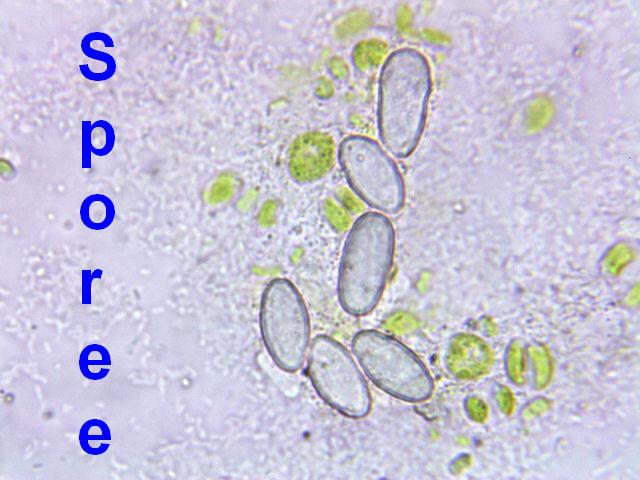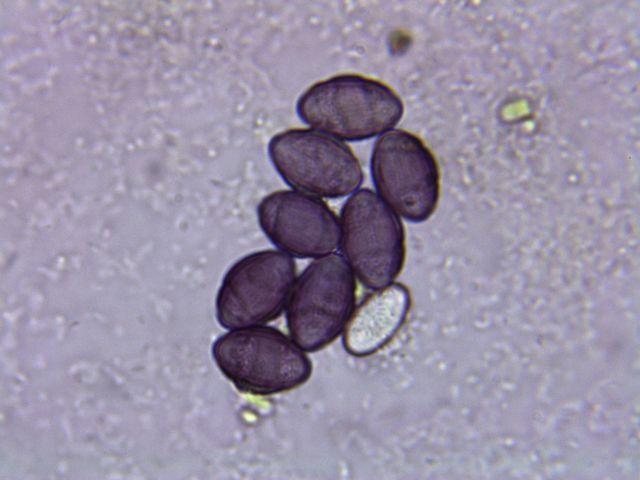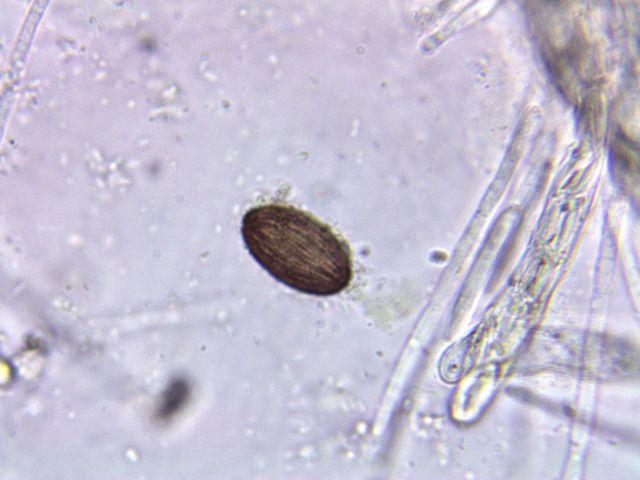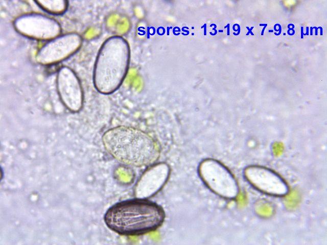 Spores ripen from hyaline to purple with longitudinal stripes: 13-19 x 7-10 µm
