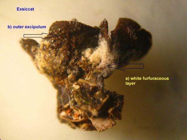 Here are a few pictures of the dried fruit body and the outer excipulum.