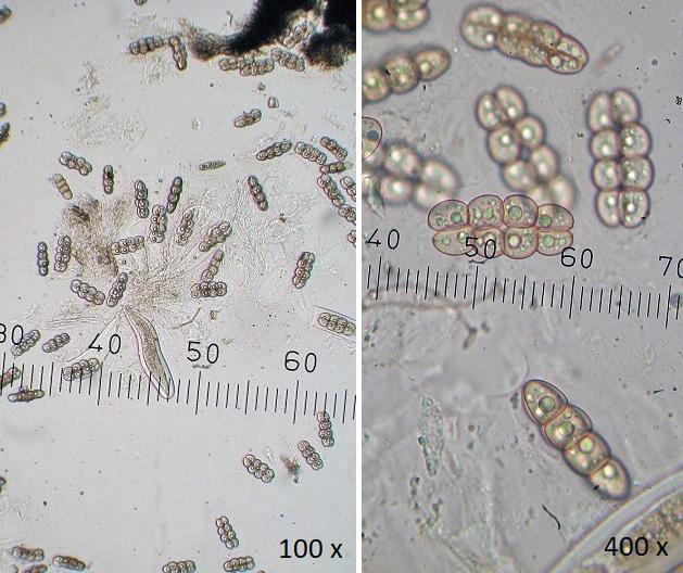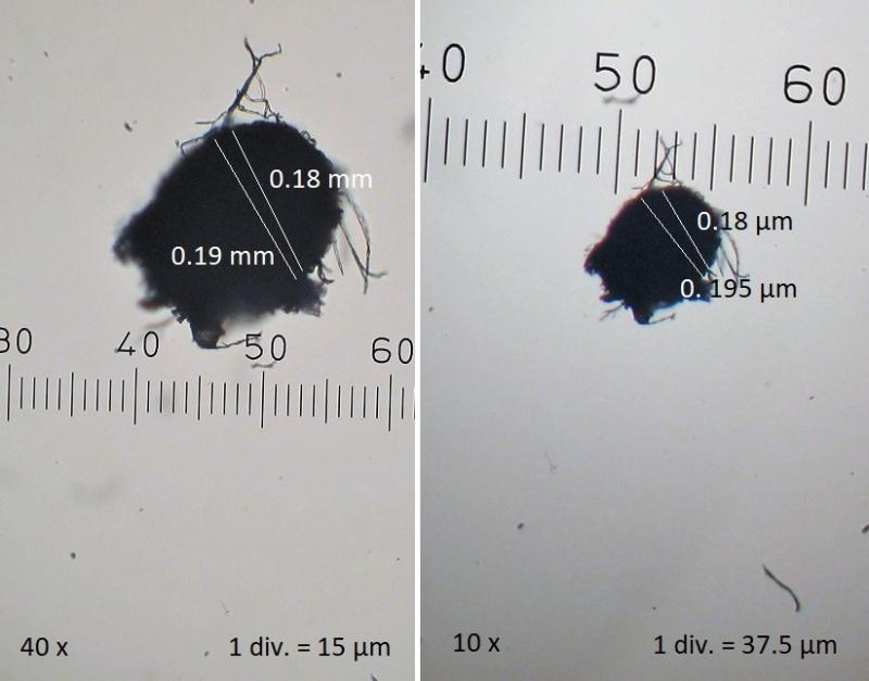 Tried to measure a pycnidium, measured the largest one: 0.18/0.19 mm.