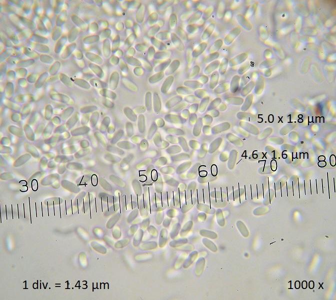 Conidia: 4.6-5.0 x 1.6-1.8 µm