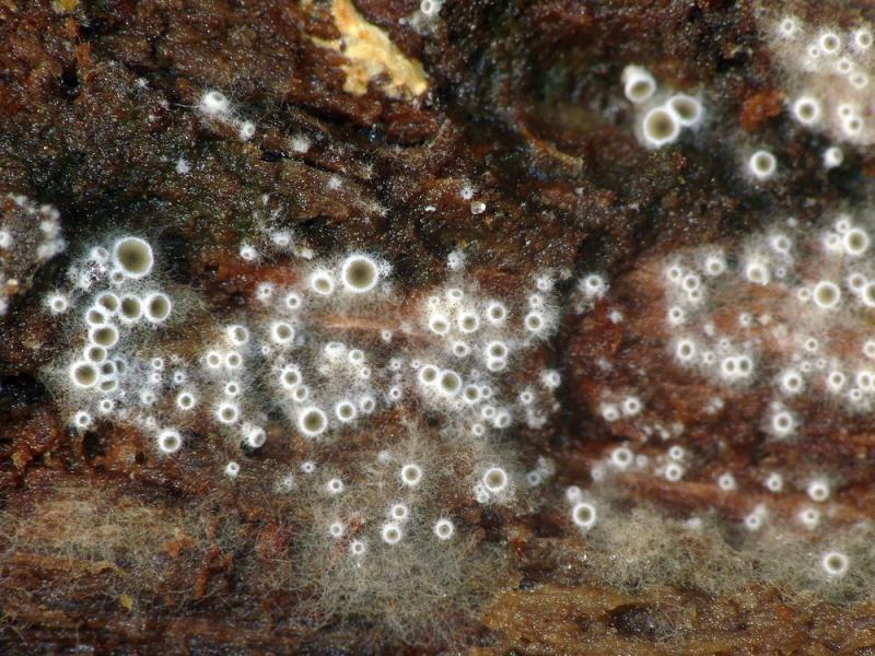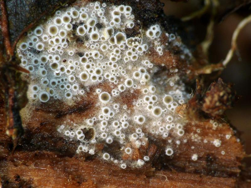 Bonsoir à toutes et tous,Hier, j'ai trouvé à la face infère d'une grosse branche pourrie et décortiquée de feuillu (hêtre très probablement) ce que je pense bien être Eriopezia caesia.