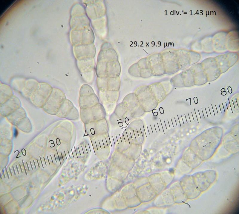Spore sizes: 28.6-31.5 x 9.4-10.3(-10.9) µm