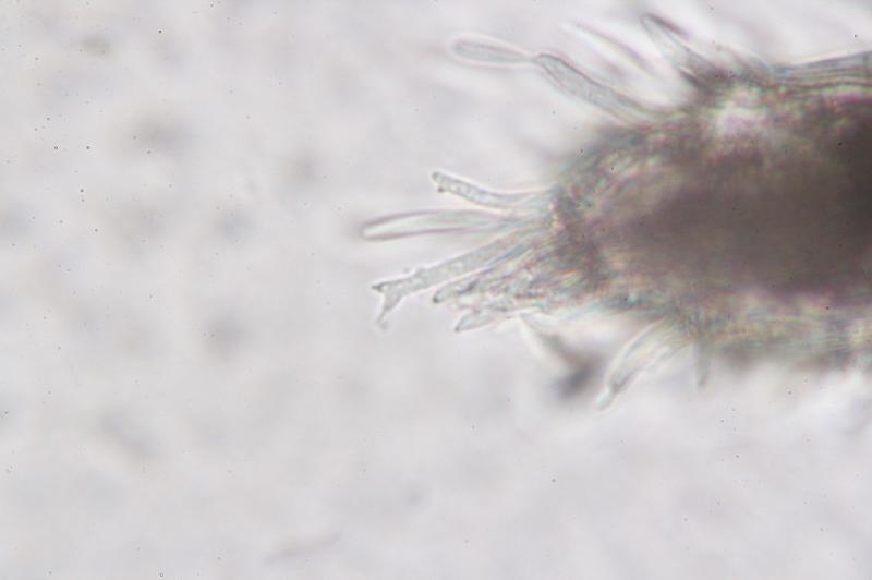 yesterday i found in a dried creek this anamorph fungus on a Carpinus betulus or Fagus sylvatica branch. I think the fungus have two different conidia one of them is produces at the hyphae and the other one are possible free.
