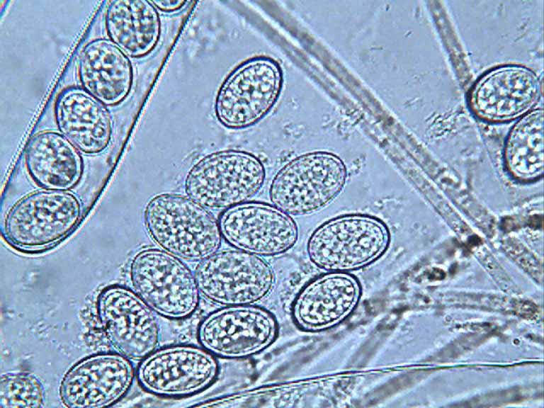 pelos excipulo 290--390 x 20--28, base simple la mayoria y 1--2--3 septos