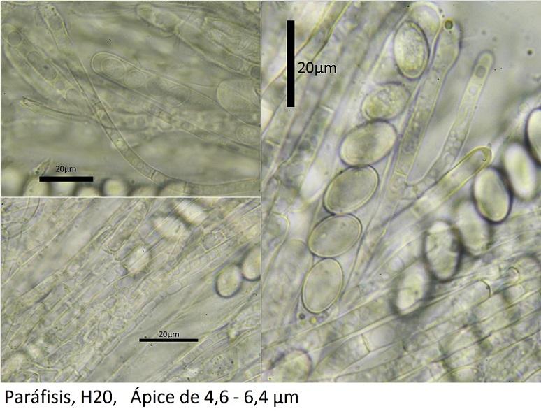Paráfisis ramificadas, apenas engrosada en el ápice (4,6 - 6,4 µm)