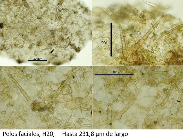 Pelos faciales parecidos a los del margen, menos numeroso y algo más corto, de hasta 281 µm de largo.