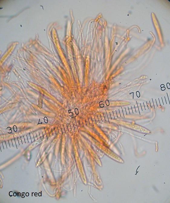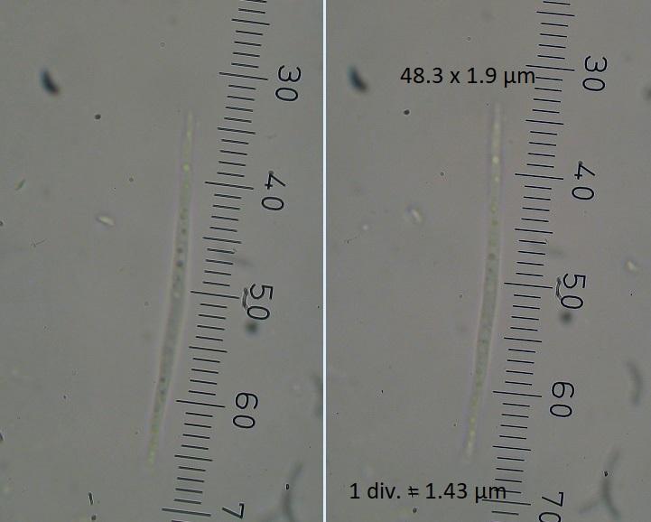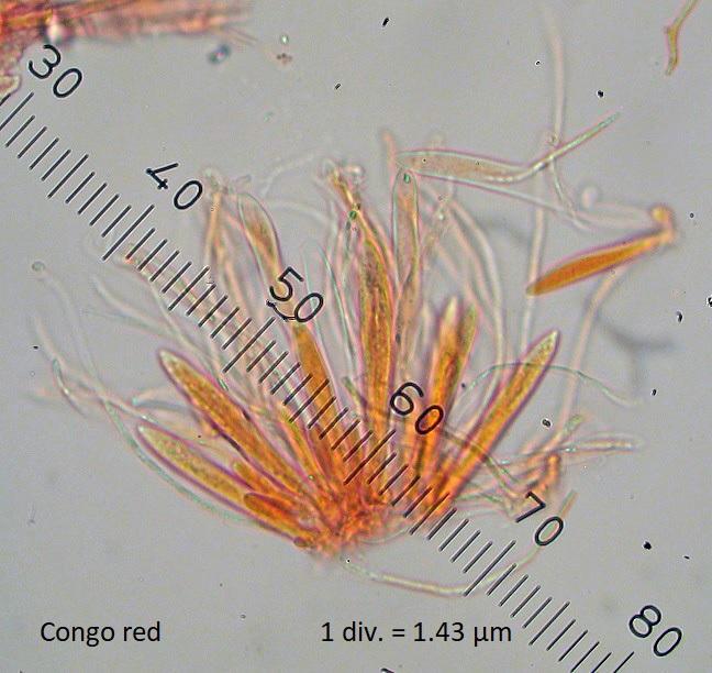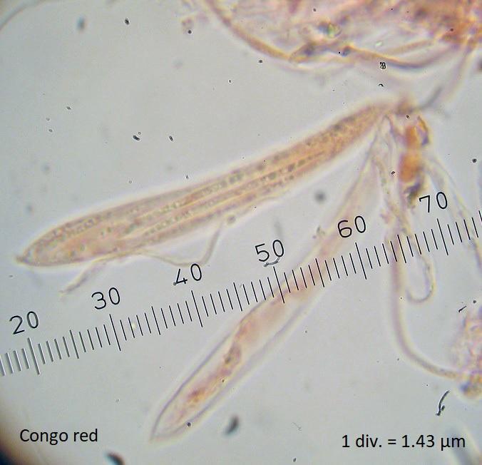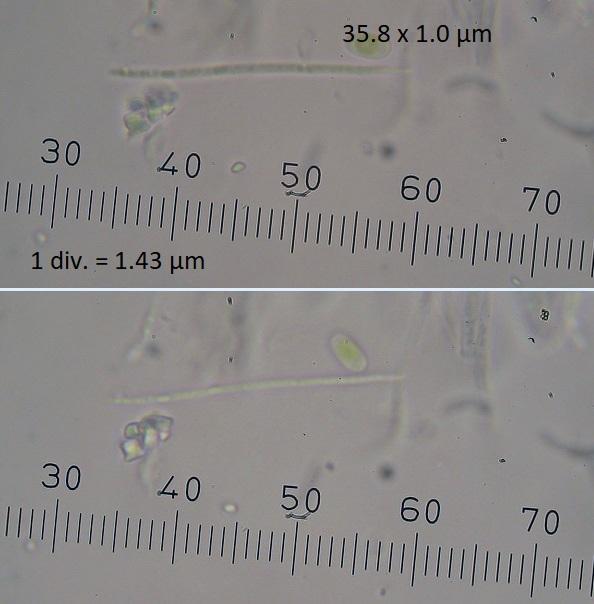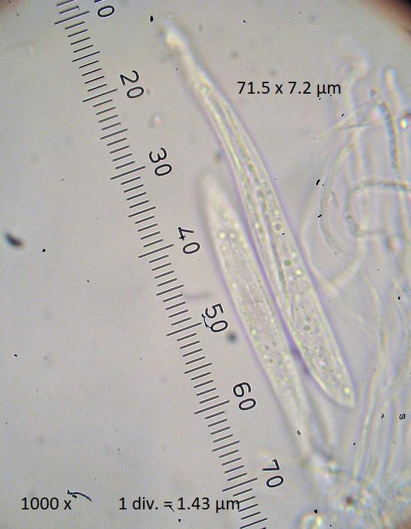 Spore size: 35.8-48.3 x 1.0-1.9 µm