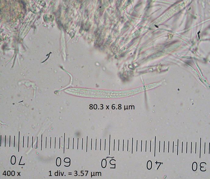 Asci: 71.5-80.3 x 6.8-7.2 µm