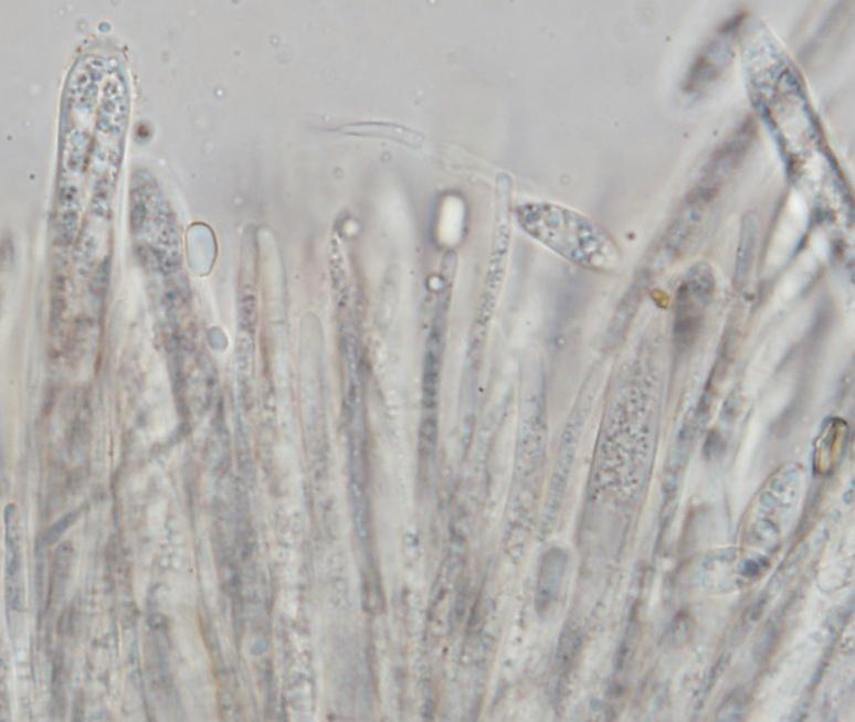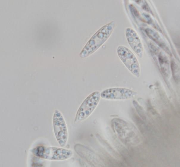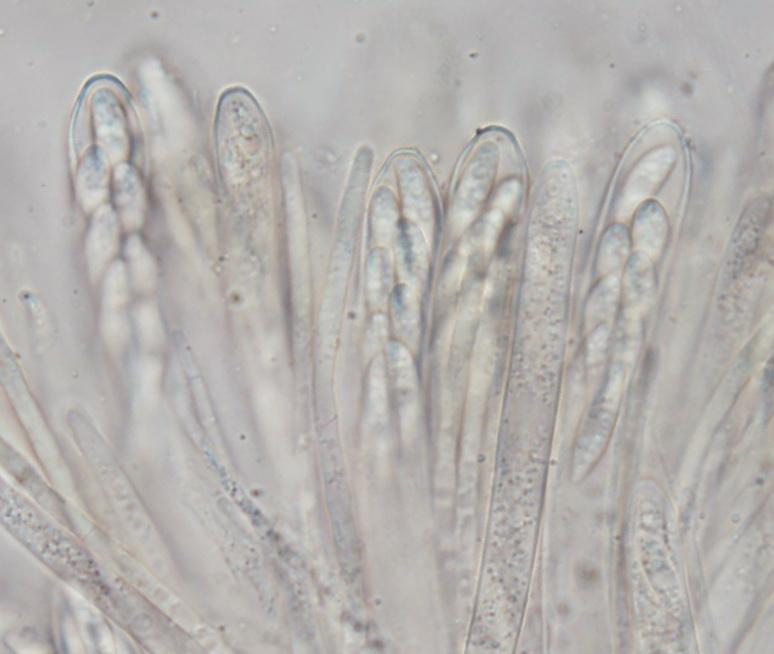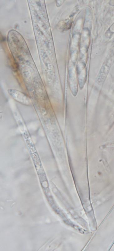 a few days ago I received this collection on indet. plant material embedded in soil (likely some herbaceous stem). The apothecia colour is cream but they tend to change to redbrown when old. The scutuloid ascospores measure 14.5-18.5(20.5) x 5.2-6 µm. I did not observe setulae. Croziers are absent.
