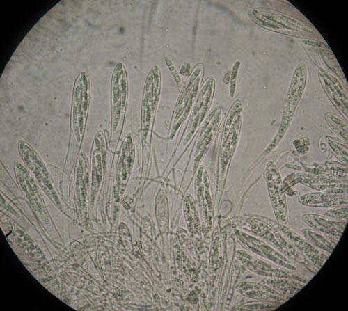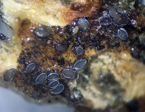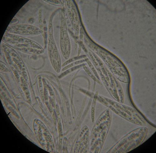 On the husks of sweet chestnuts Small ascomycetes that resemble slit lips. Today under the microscope, 8 Traces (26-32 x 3-4 ?m) in an asci that gradually runs into a narrow shape. Very muddy Parafysen, difficult to measure, about 70 x 1.5 ?m. With Melzer.
